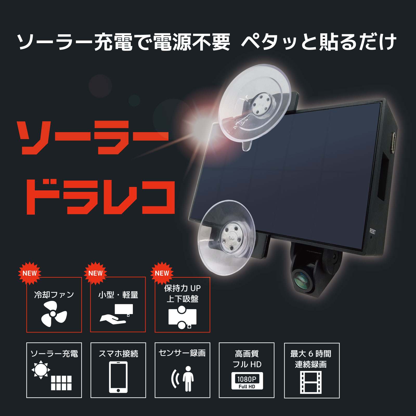 ソーラードライブレコーダー ソーラー発電 配線・電源不要 1080P FHD スマホ連携 モニターレス [PETA-CAM-SS1080P]