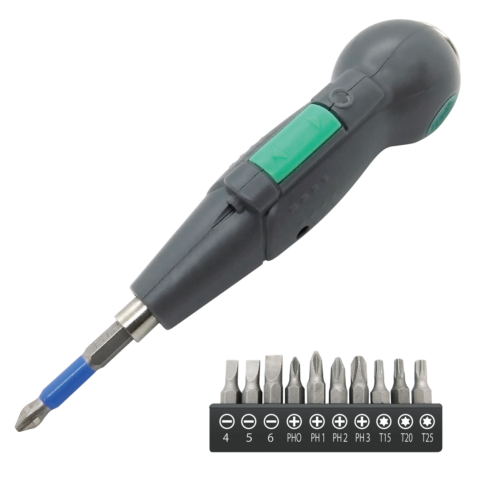 電動ドライバー コンパクト 充電式 11点ビッド付き 高輝度LEDライト 正逆回転 [DRILL-D011]