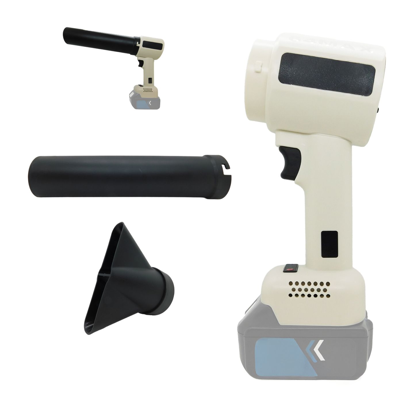 エアーガン ブロワー 超強風力 4段階風量調節 白色 コードレス ノズル付き [AIR-GUN-ST4-W]