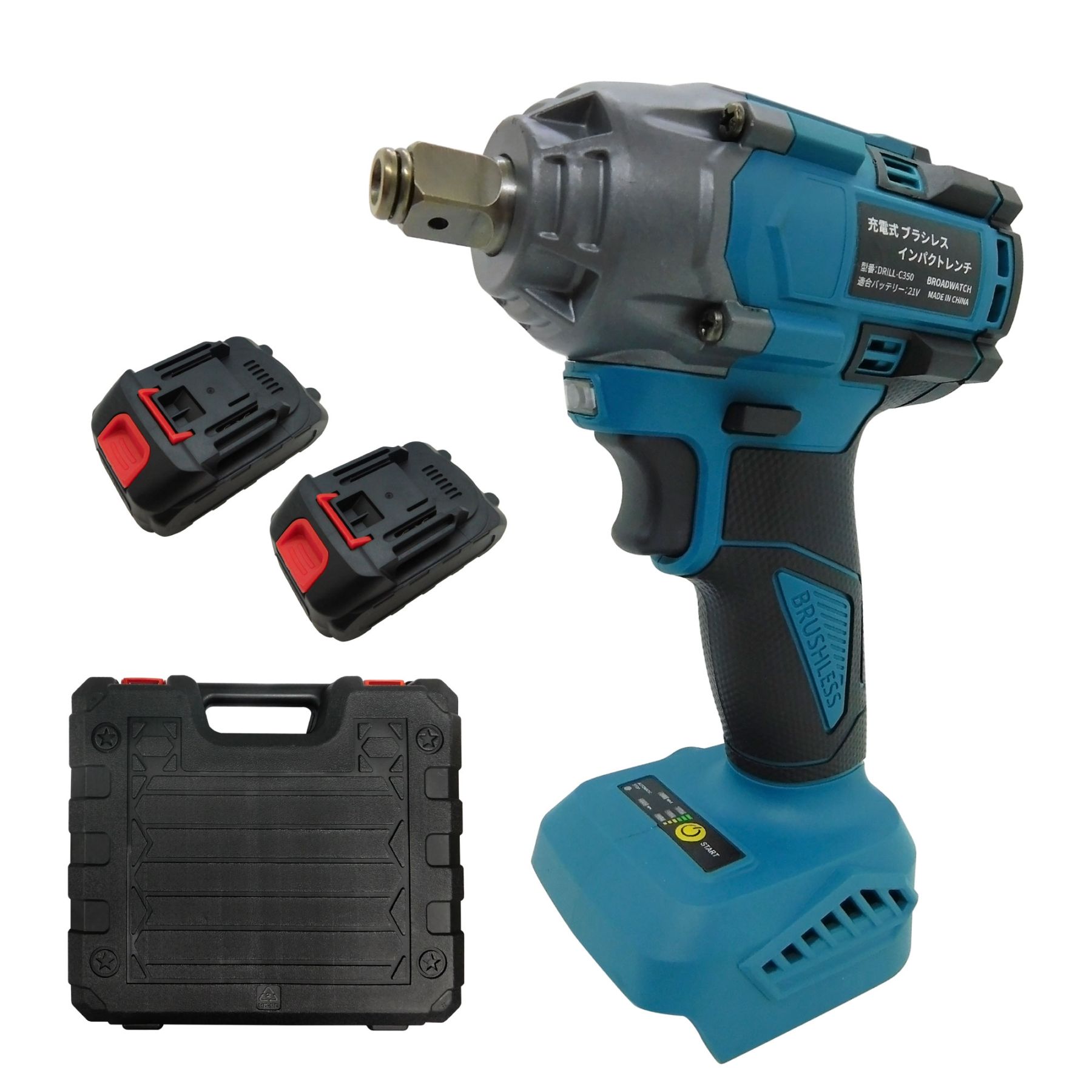 インパクトレンチ ブラシレスモーター搭載 充電式 高速(ケース、電池1200mAh×2個セット) [DRILL-C350-S1200]