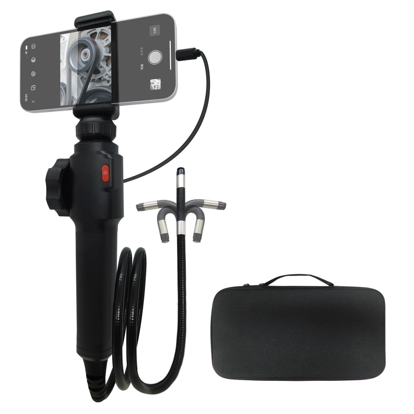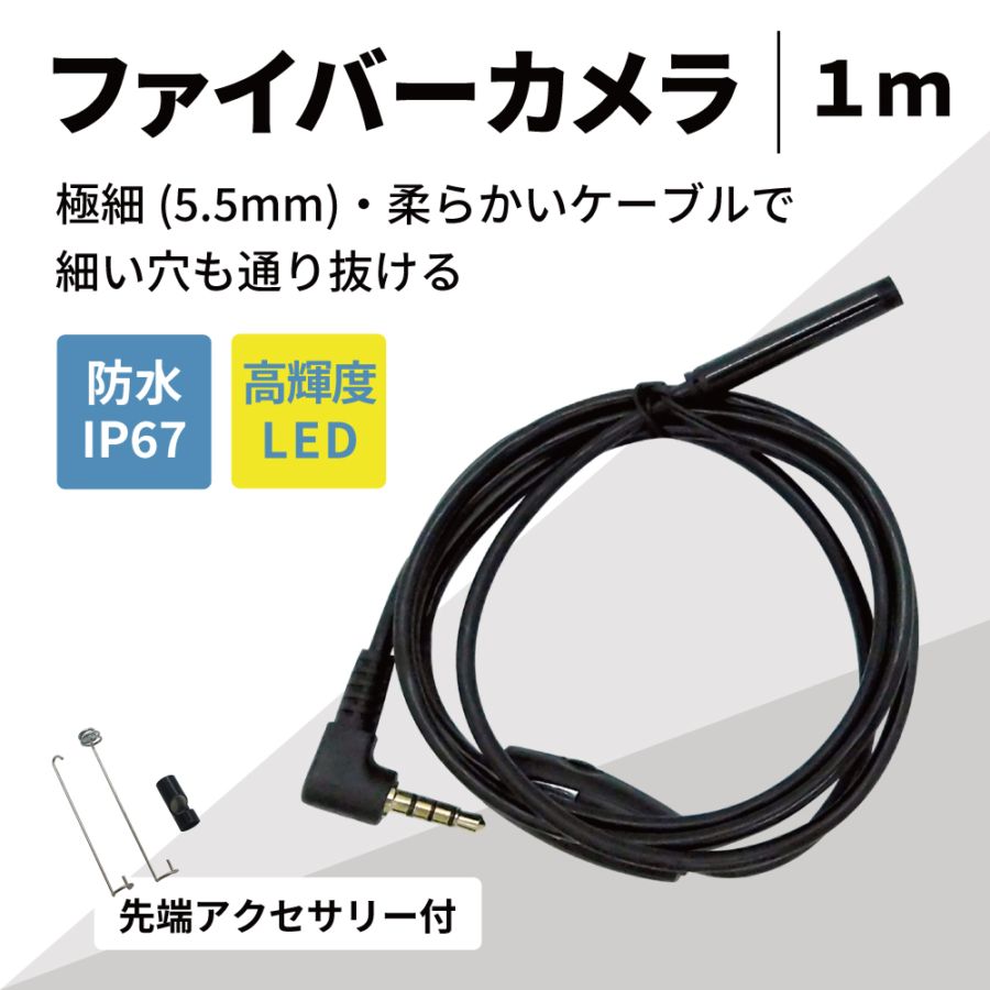 ファイバースコープカメラ 先端可動式 形状記憶ハードケーブル 防水(1m、先端Φ8mm、スマホ接続) [FIB-LCAM-1LM-1M]