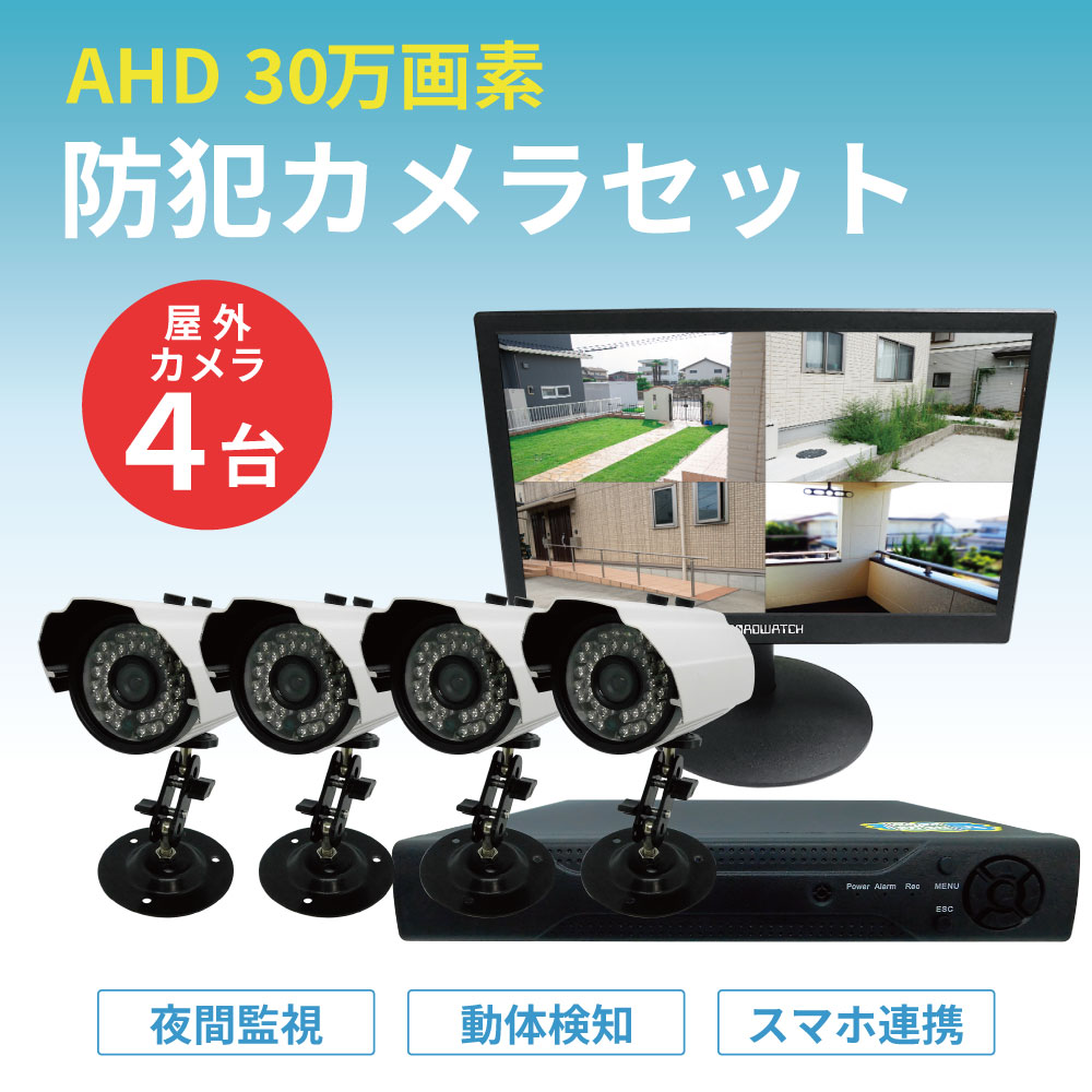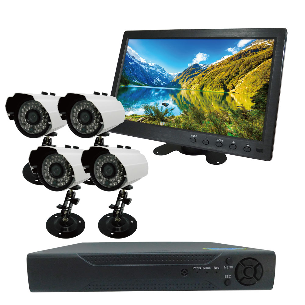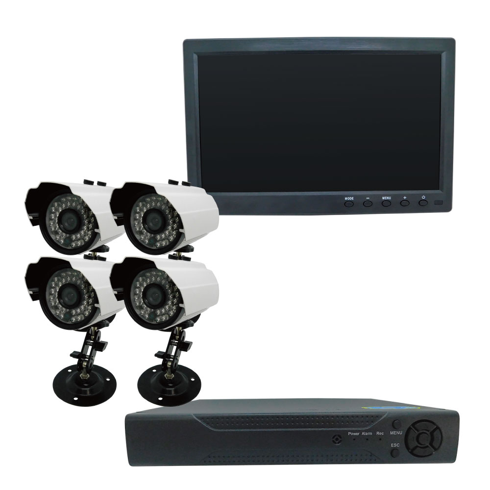 30万画素屋外型防犯カメラ(4台)・録画機(HDD500GB)・10インチモニターセット [SEC-S-4C-10L-500]