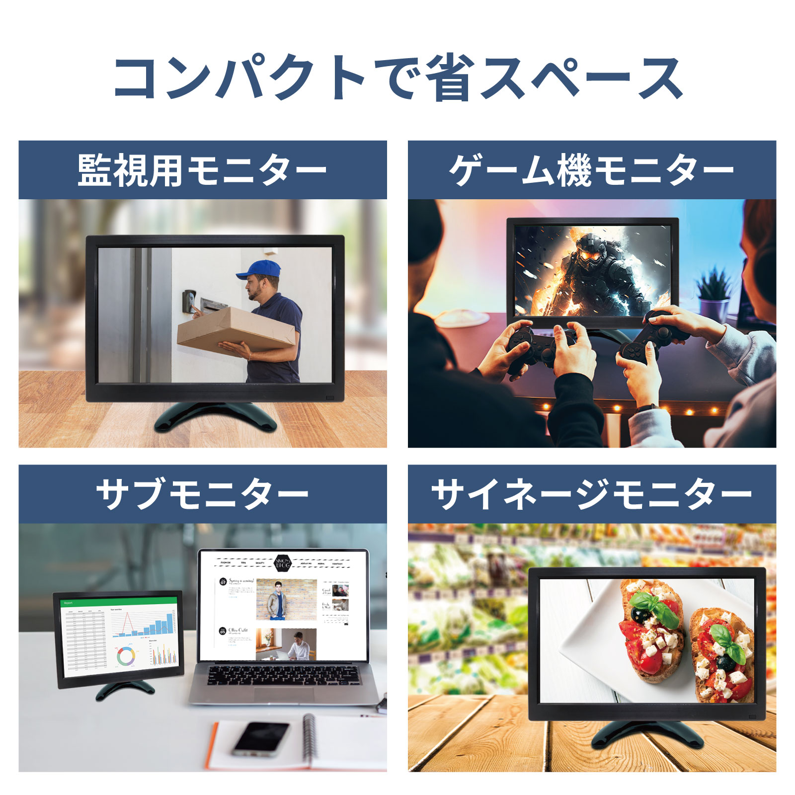 ポータブルモニター 11.6インチ 1920×1080PFHD HDMI VGA AV等 BNC VESA対応 USBポート スピーカー内臓 リモコン付き グレア [LCD-011-1080P-G]