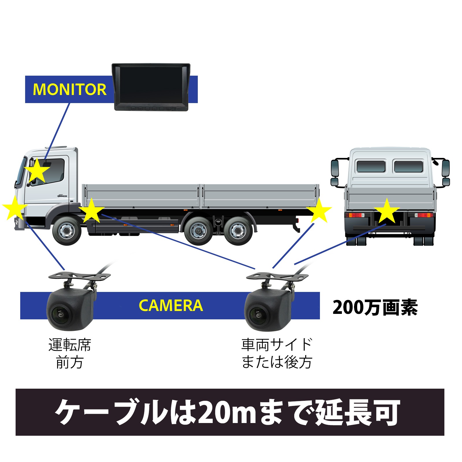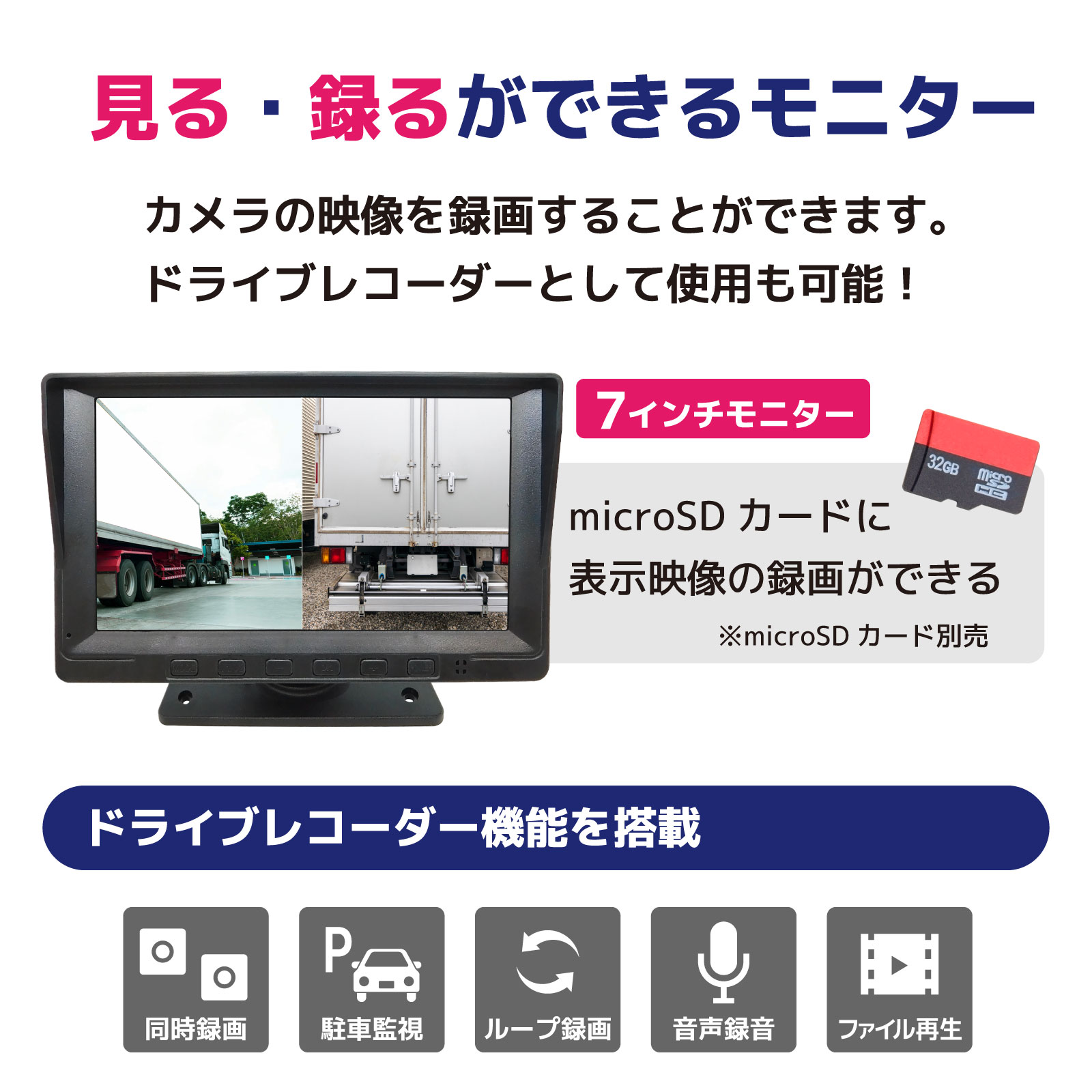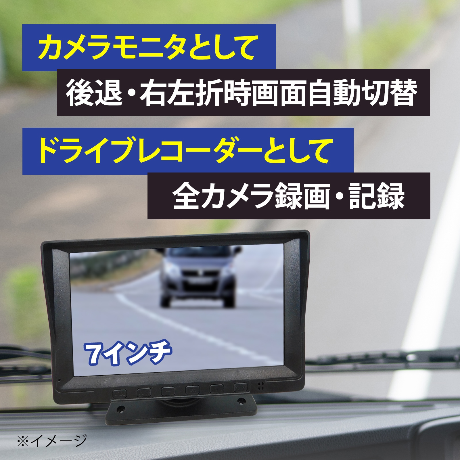 360度監視 200万画素カメラ4台 7インチモニターセット(録画機能付き) [CAR-S-360-4B]