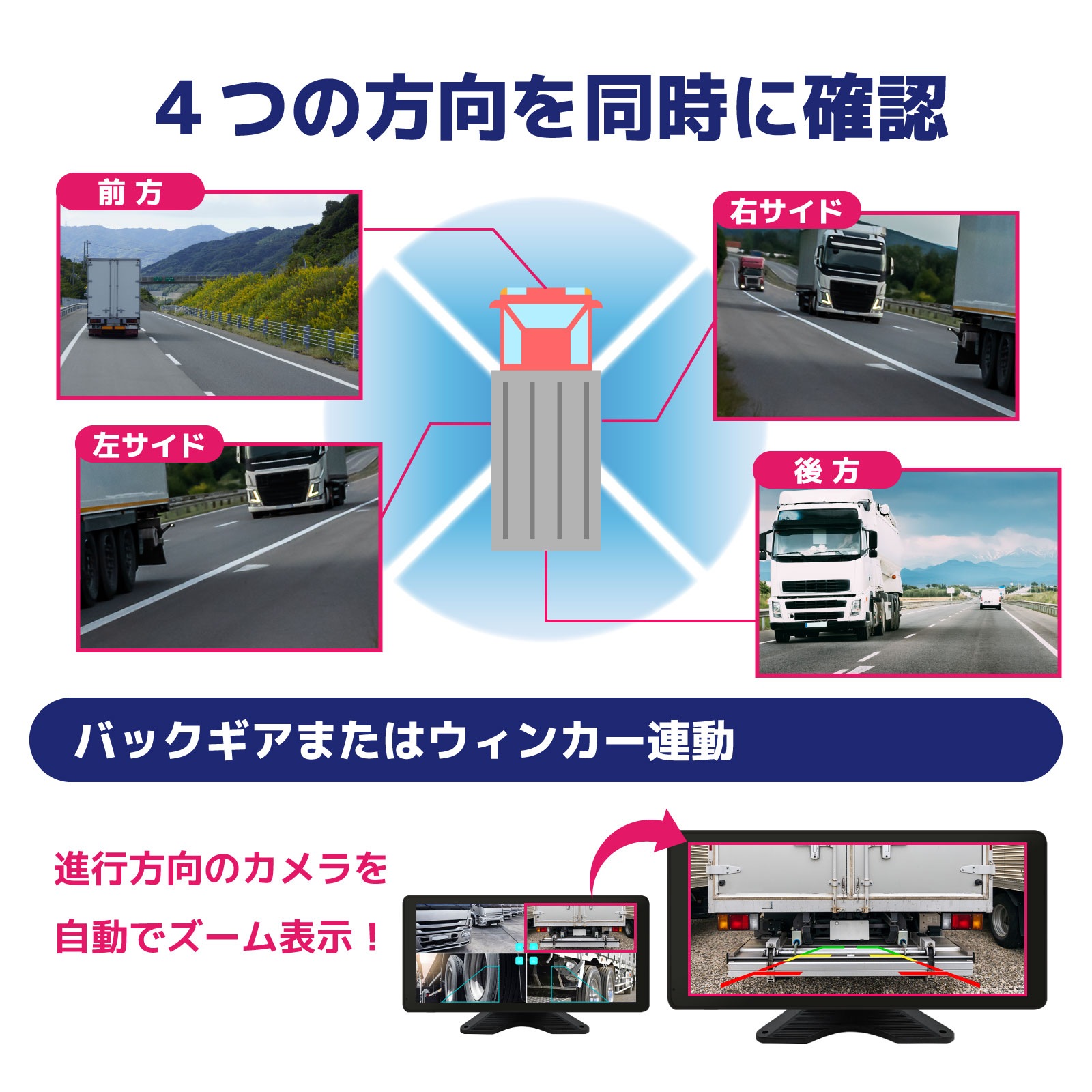 【大型車用】AI搭載で事故リスクを軽減!AI機能搭載パノラマ360°ビューモニター [CAR-S-3D360AI-4B]