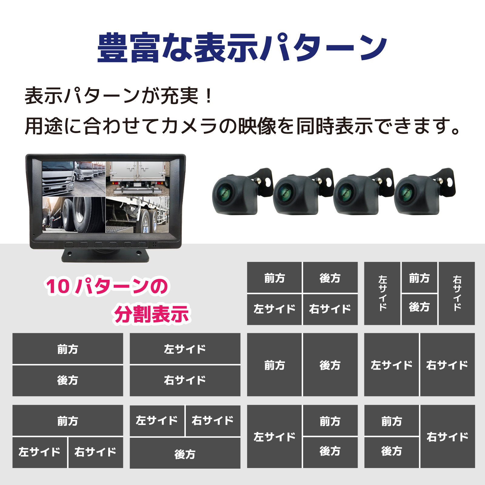 4方向監視AI検知機能(12-24V) 録画機能付モニターセット 10.36インチモニター 4カメラセット [CAR-S-360AI-4B]