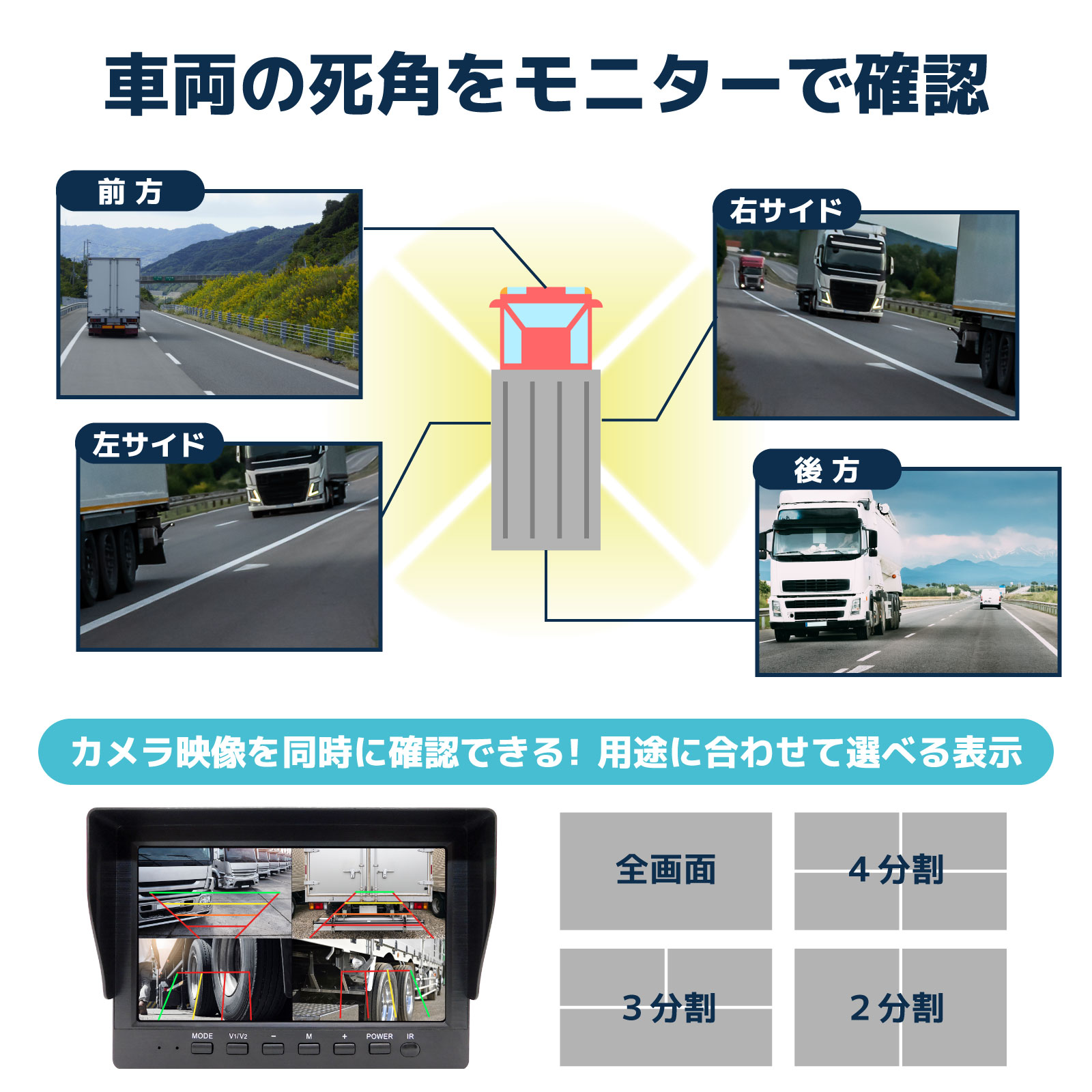 ワイヤレスカメラセット 人検知AI付200万画素 7インチモニター 大型車用(カメラ3台) [CAR-S-W-3CH]
