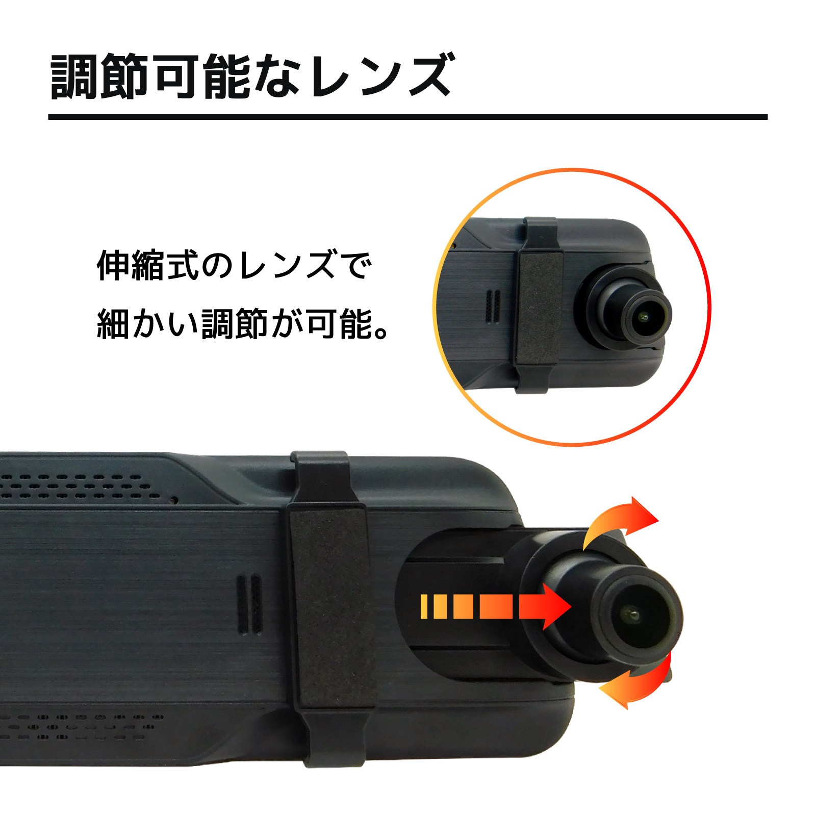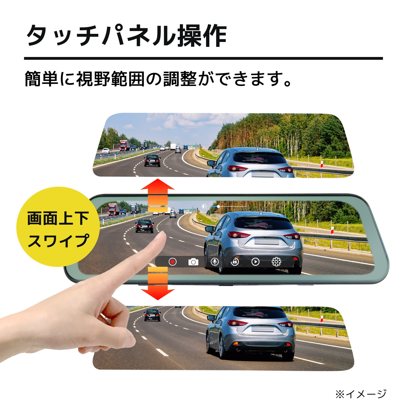 ドライブレコーダー 前後2カメラ対応 ミラー型 (タッチパネル式、9.6インチ大画面、前後2カメラ) [CARTM-2C1080P]