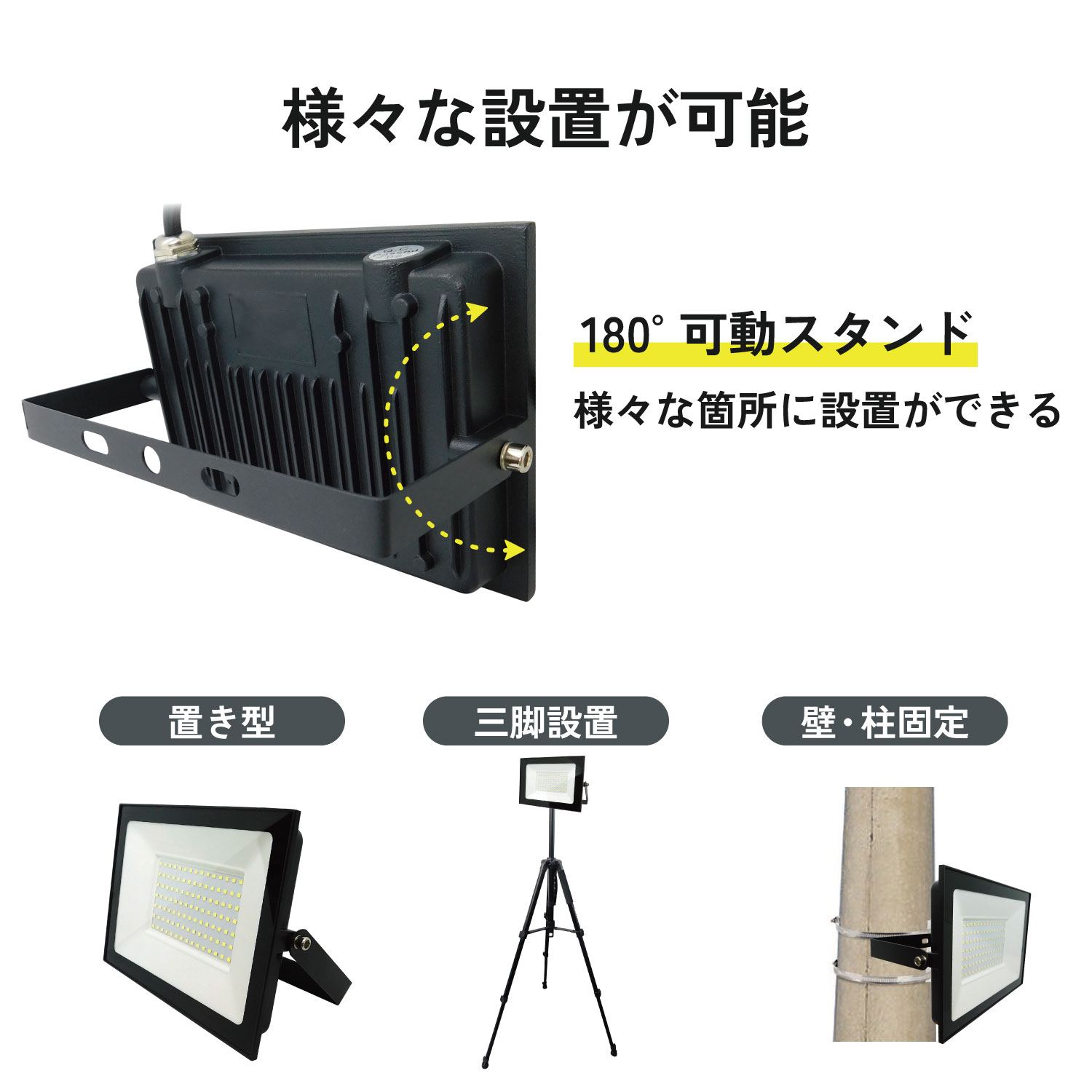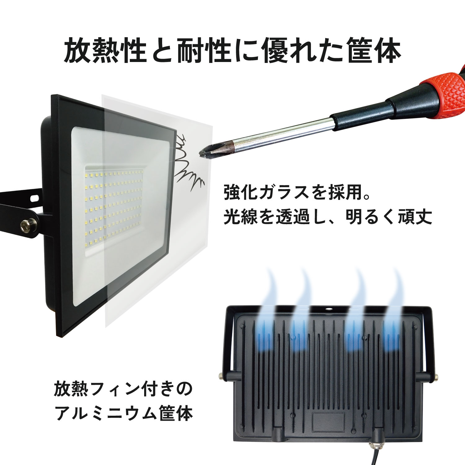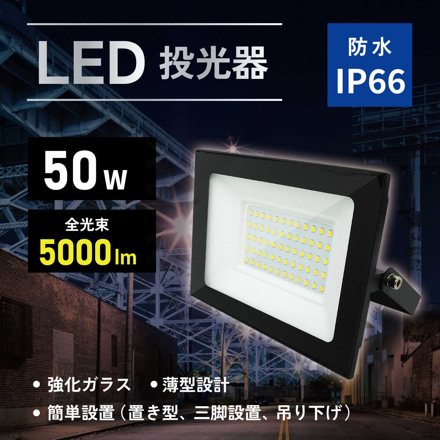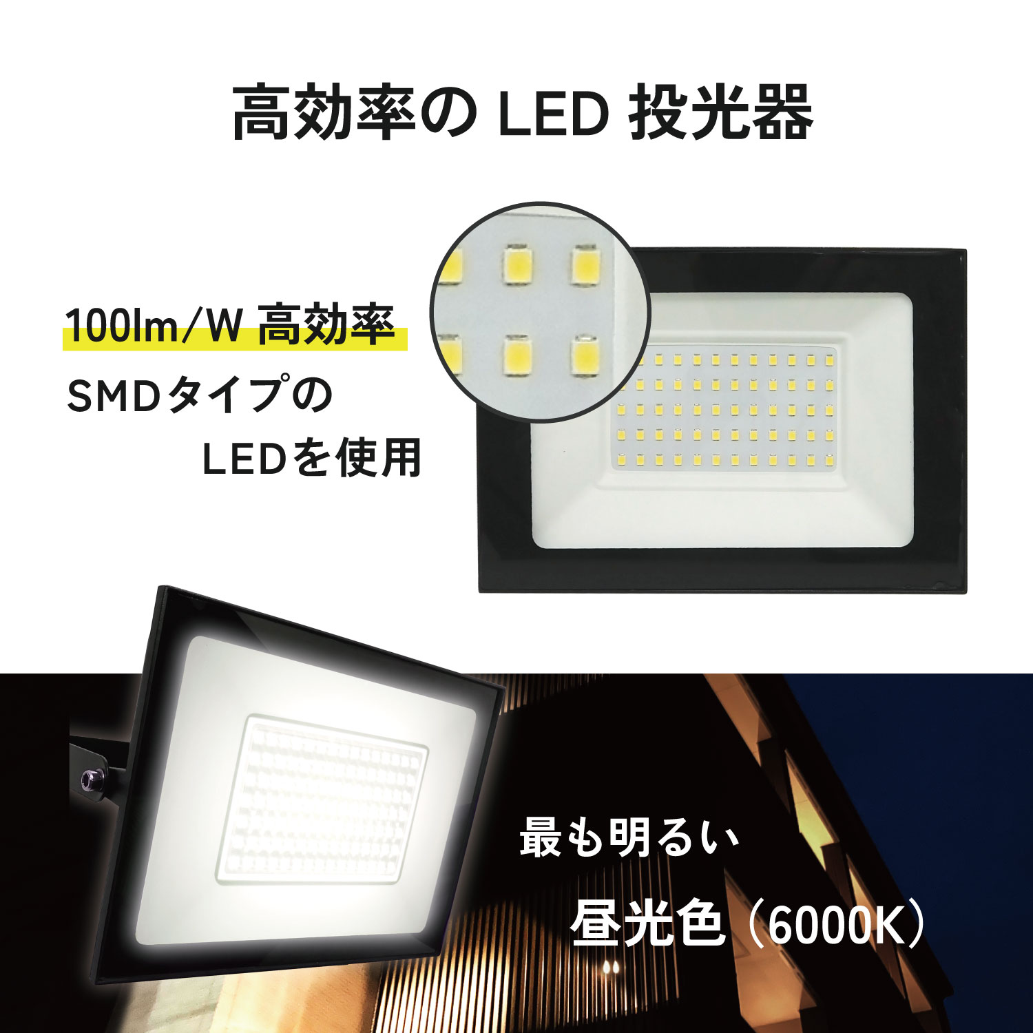 大型投光器 IP66防水 LED 投光器 作業灯 100W 10000LM 屋内 屋外 [LED-AC100]