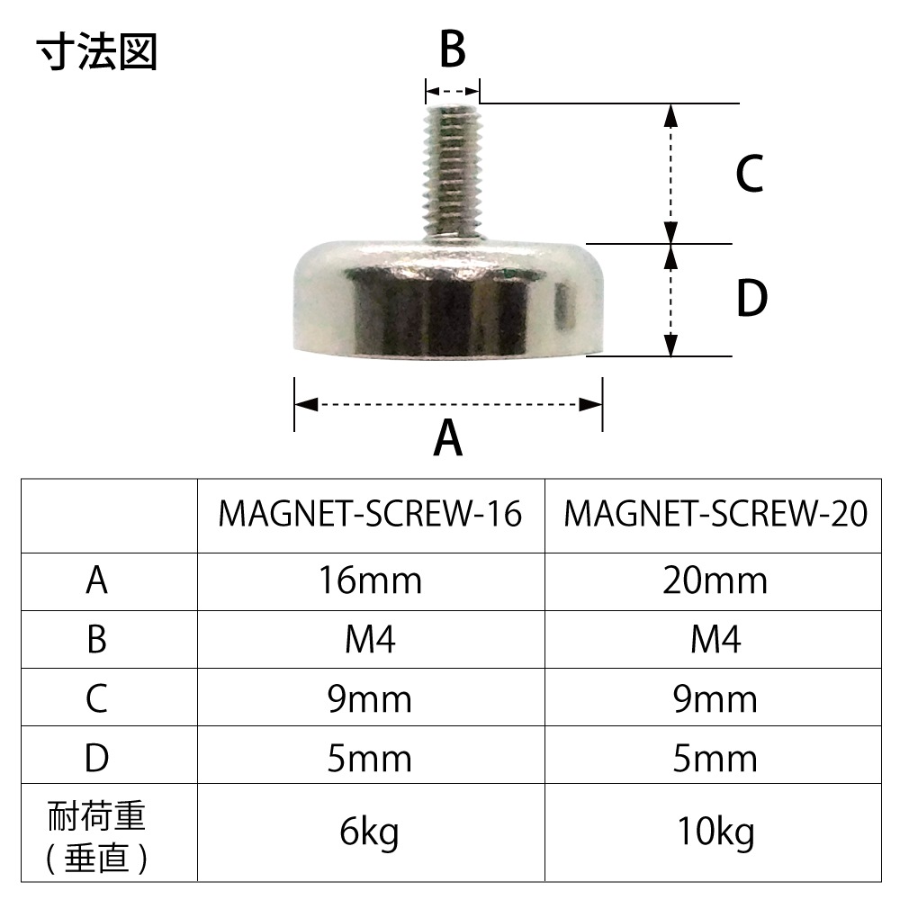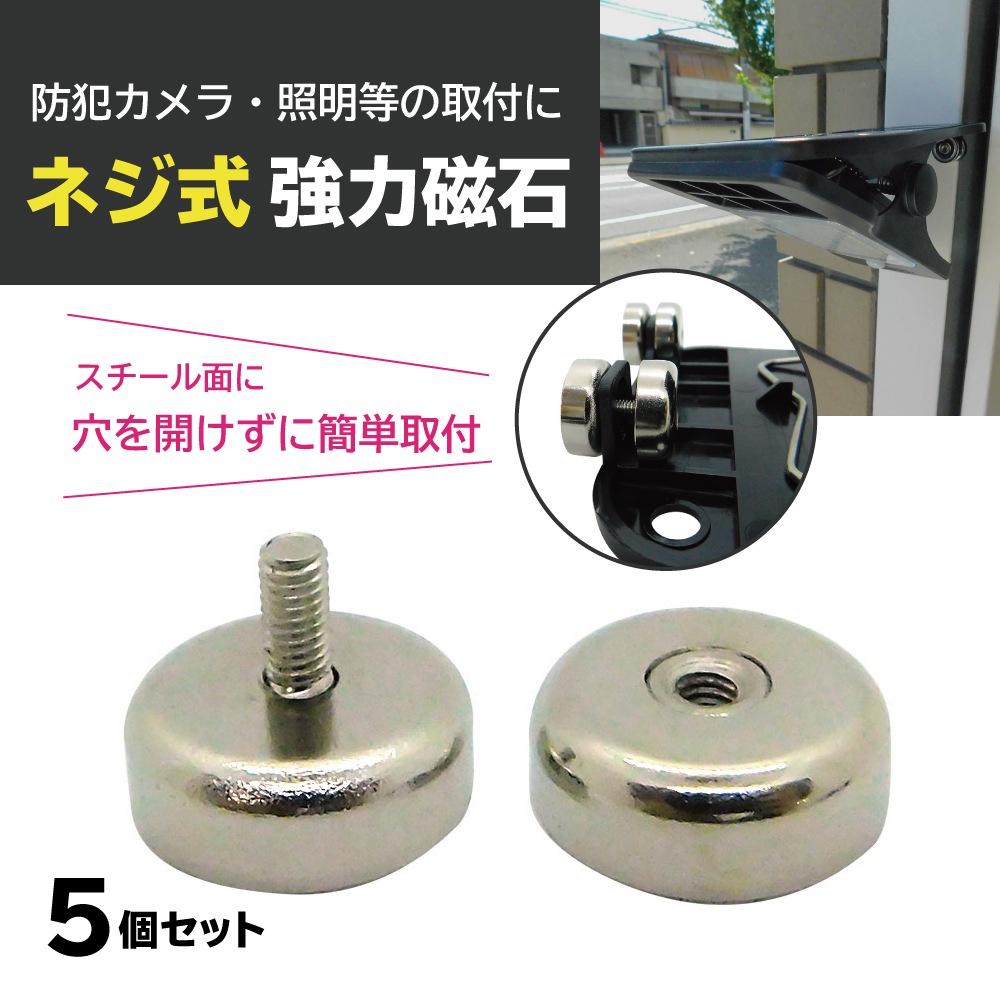 ネジ式 マグネット 5個セット 強力ネオジム磁石 防犯カメラ 照明 (20mm) [MAGNET-SCREW-20]