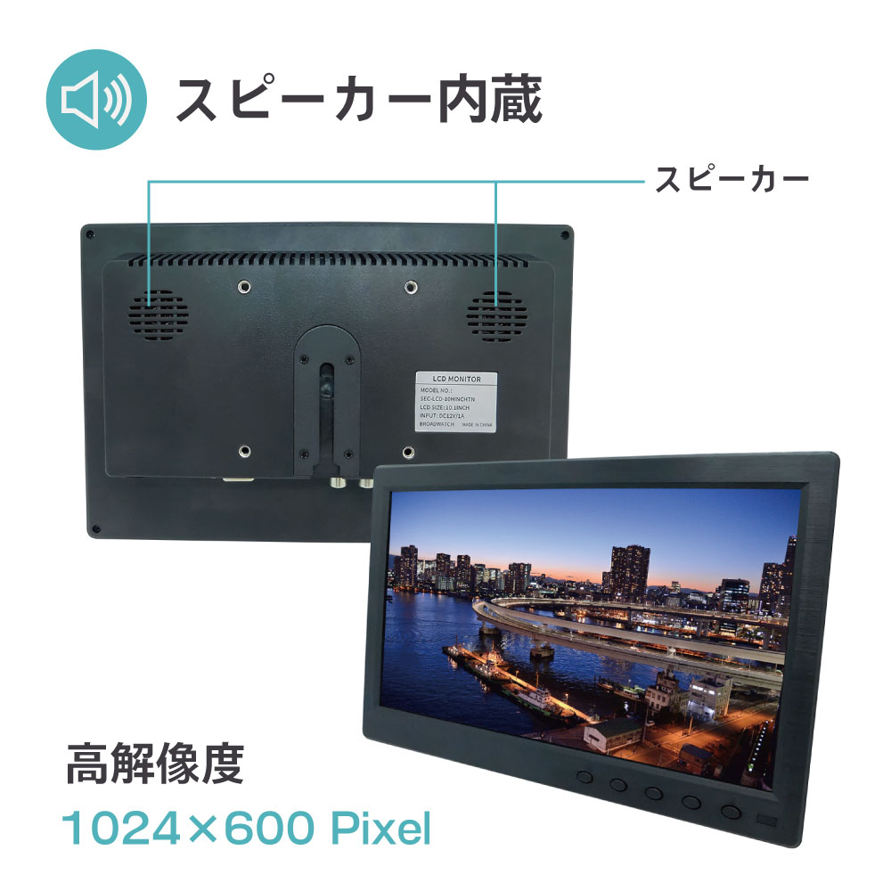 モニター 7インチ HDMI VGA AV対応 スピーカー内蔵 (カメラ接続2台) [SEC-LCD-7HINCH]