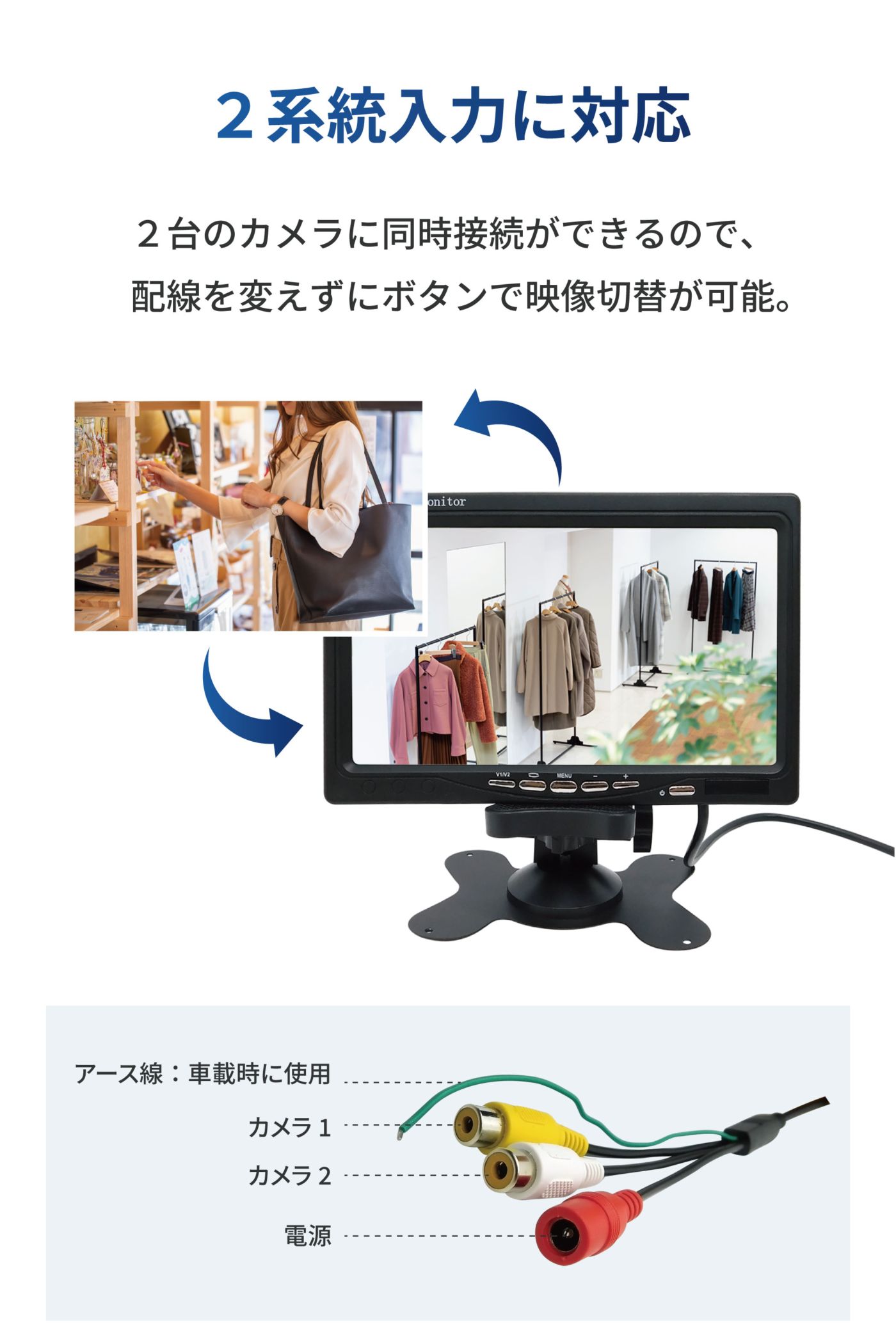 モニター 7インチ HDMI VGA AV対応 スピーカー内蔵 (カメラ接続2台) [SEC-LCD-7HINCH]