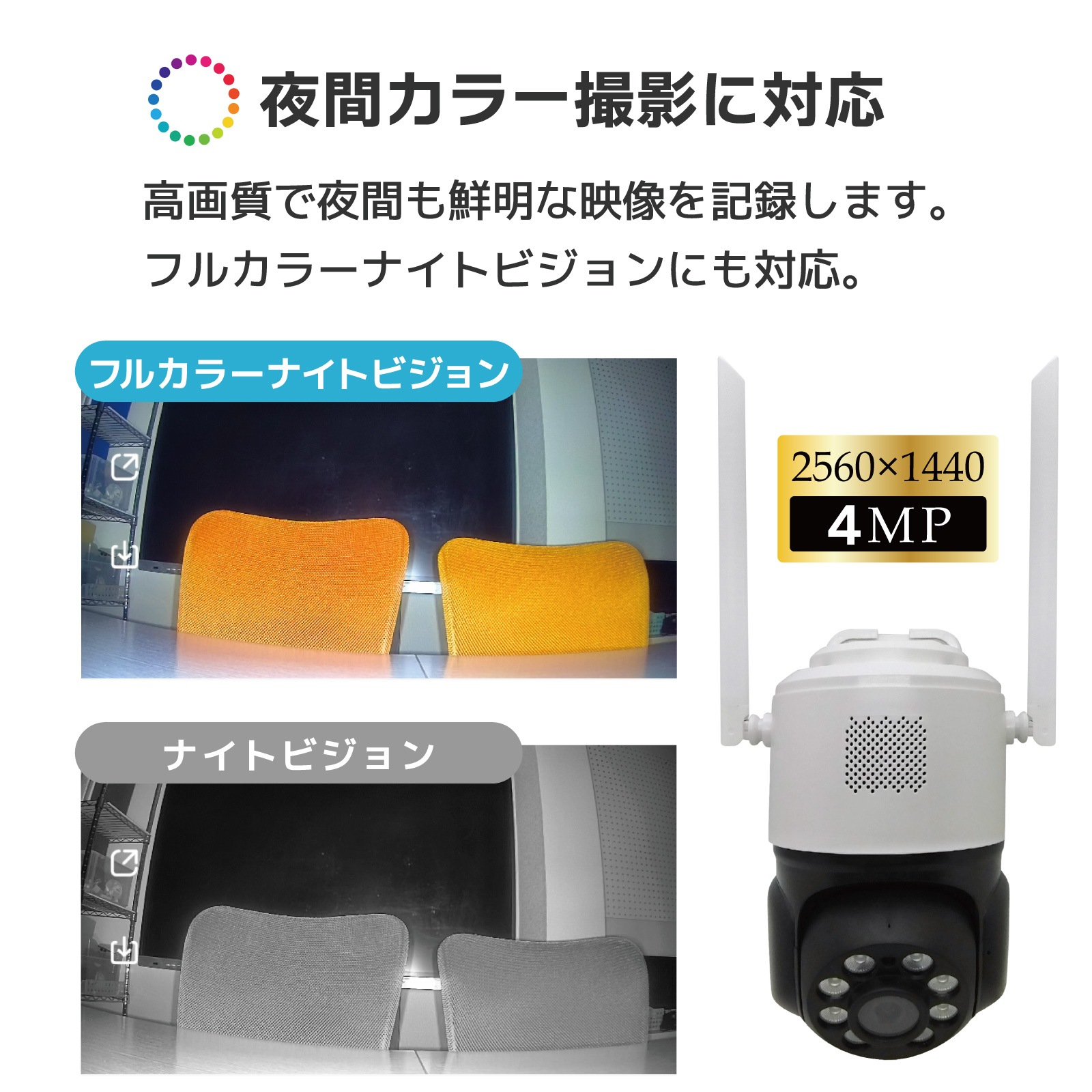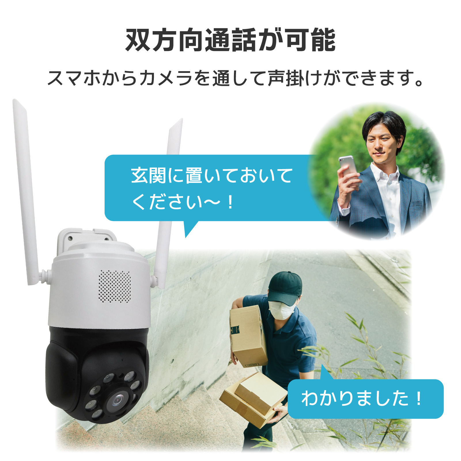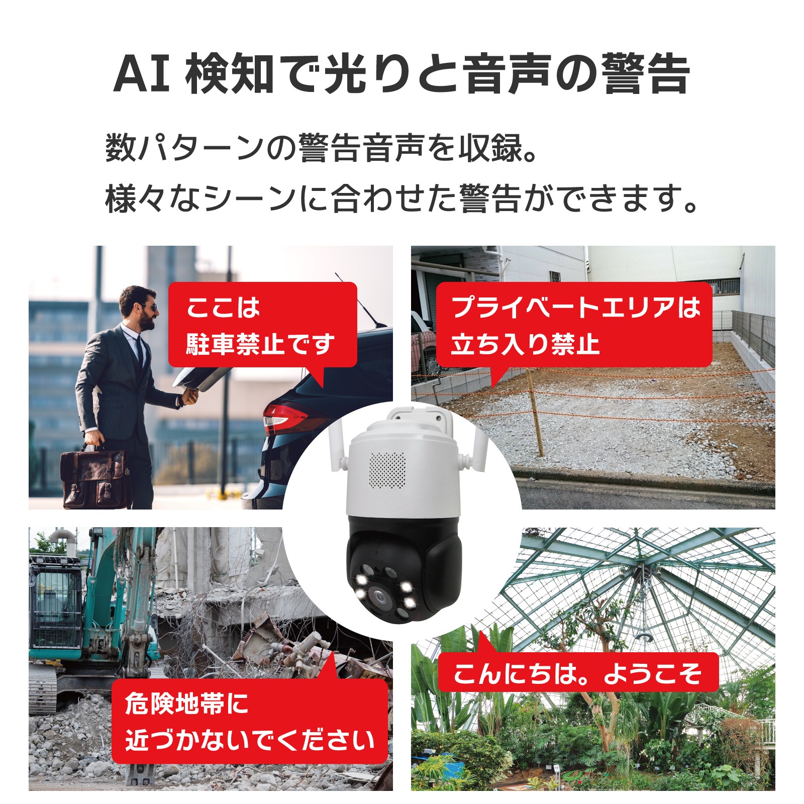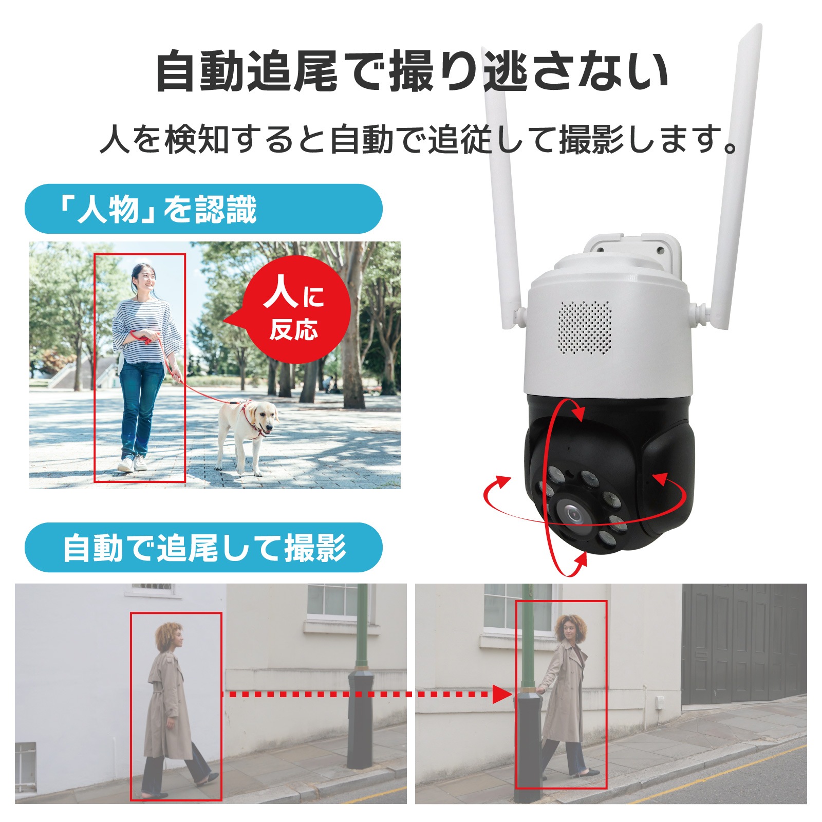 ワイヤレス防犯カメラ AI人体検知 人体自動追尾 200万画素 防水 スマホ [SEC-CAM-AI]