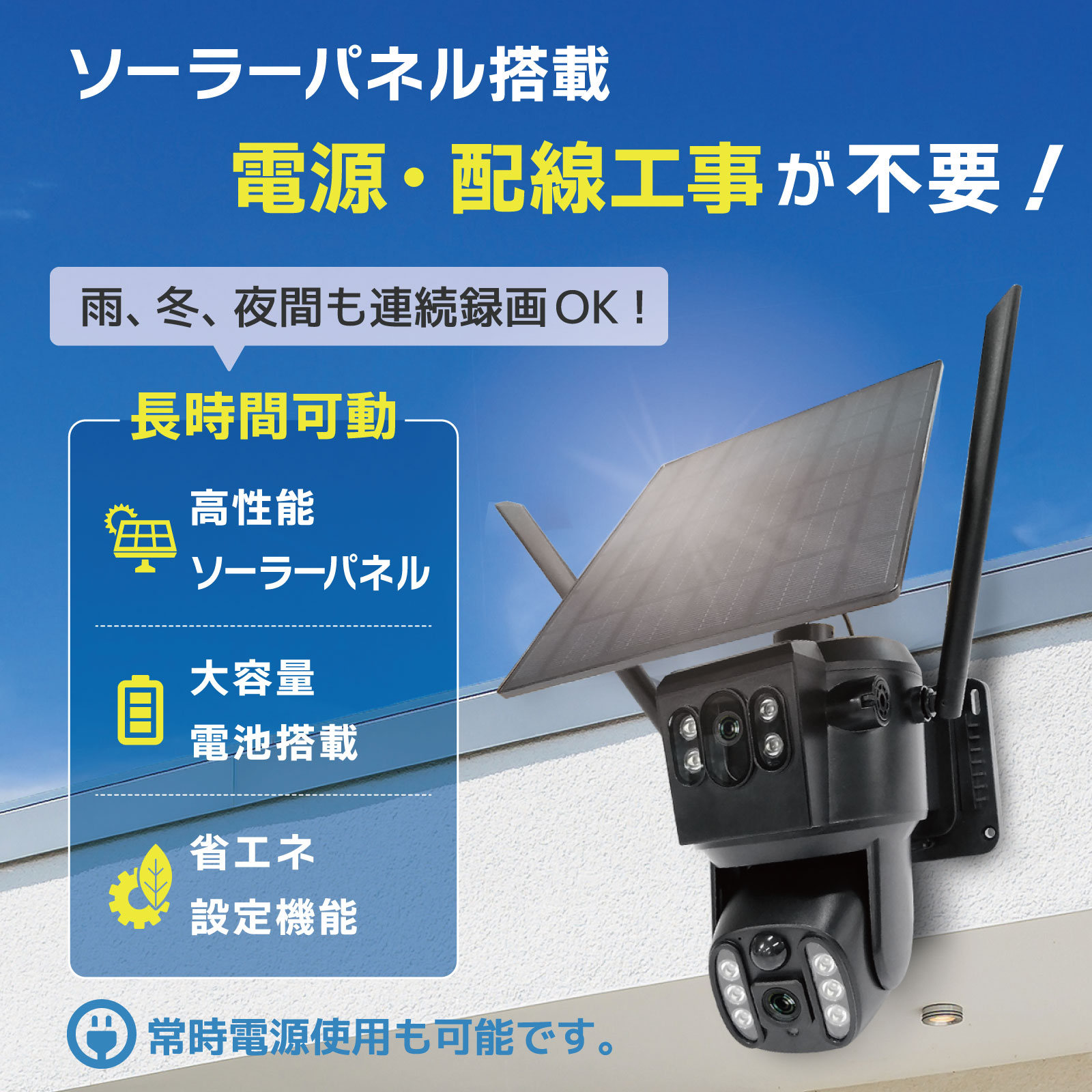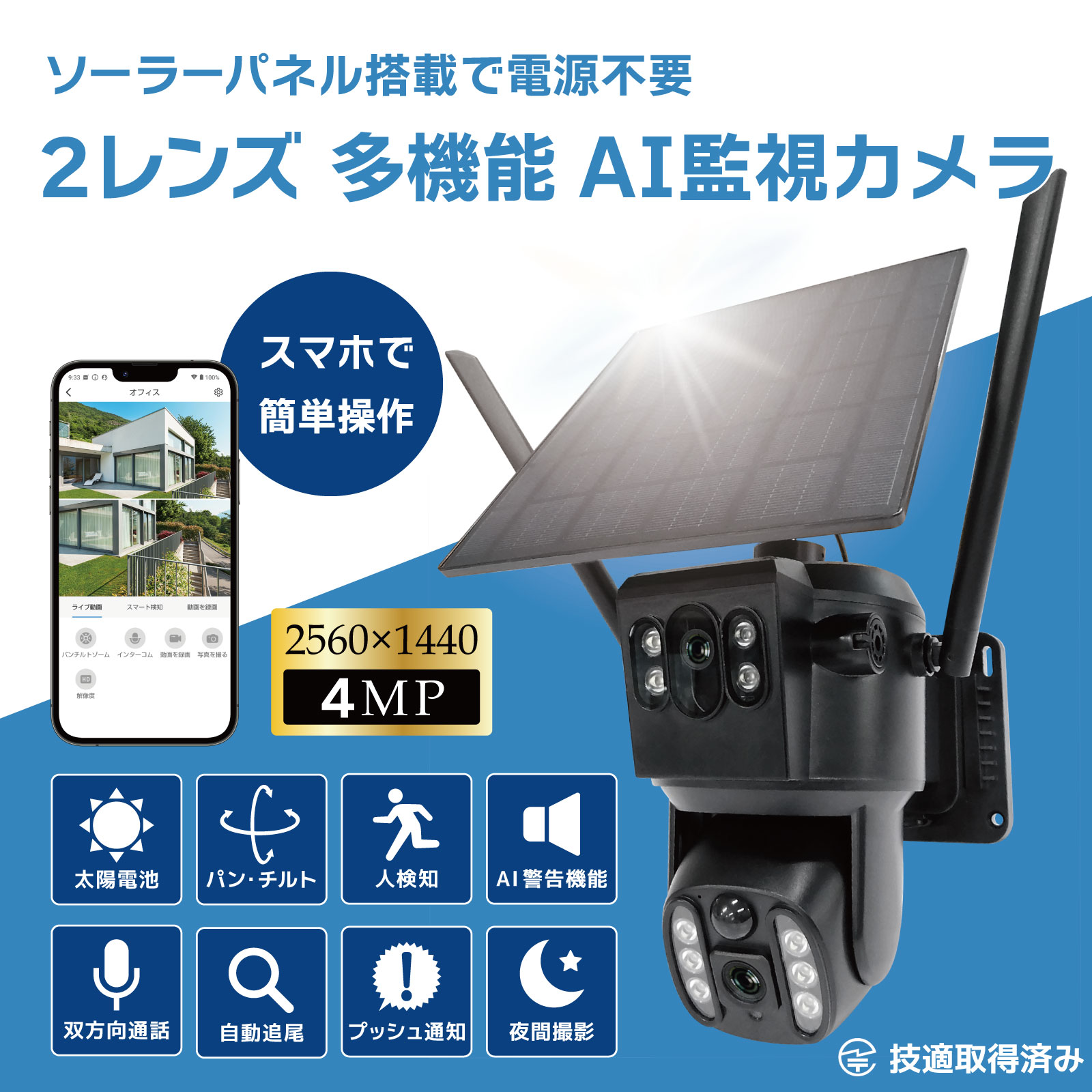 ワイヤレス防犯カメラ AI人体検知 人体自動追尾 200万画素 防水 スマホ [SEC-CAM-AI]