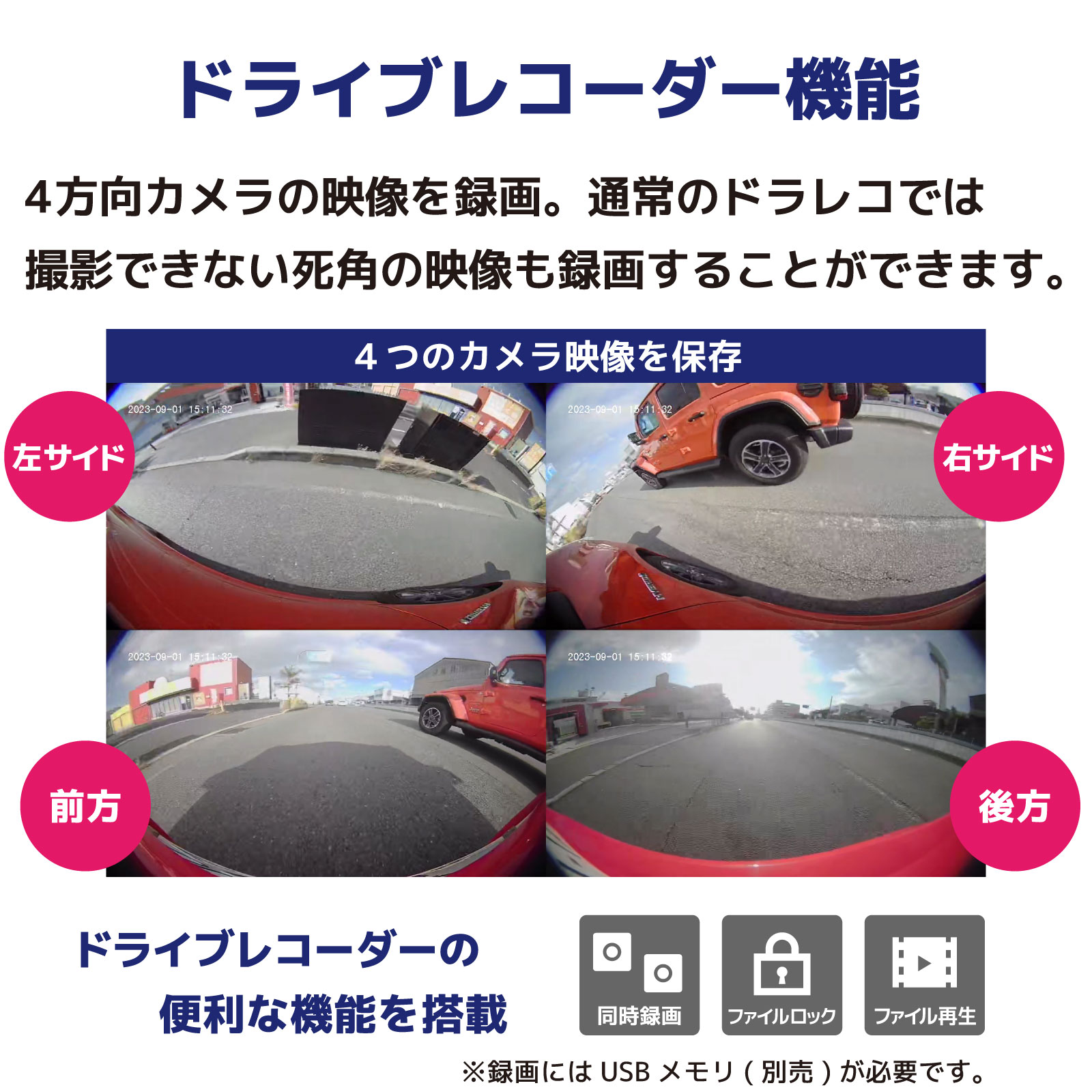 360度監視 200万画素カメラ4台 7インチモニターセット(録画機能付き) [CAR-S-360-4B]