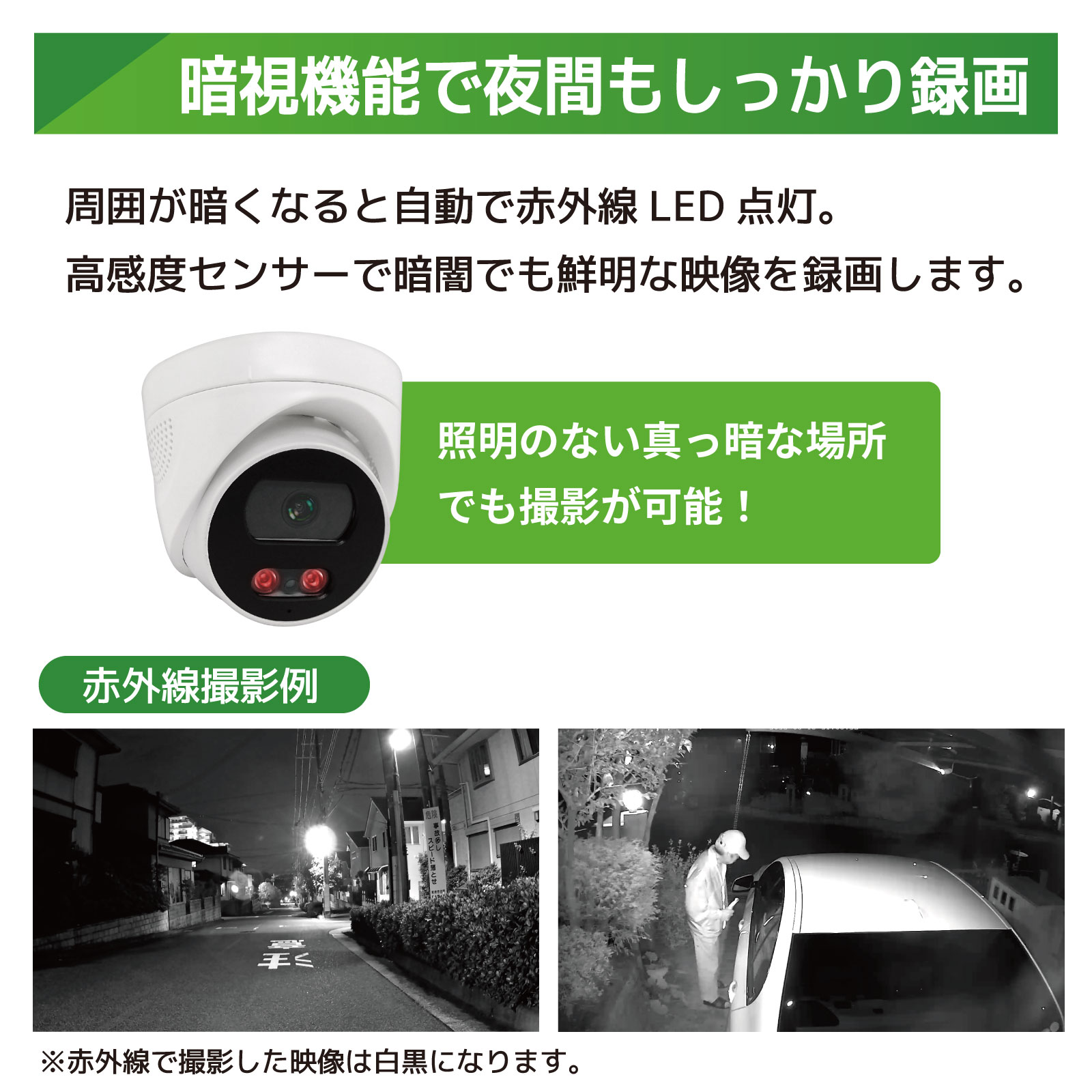 赤外線LED搭載で夜間撮影も可能。(モノクロ撮影)