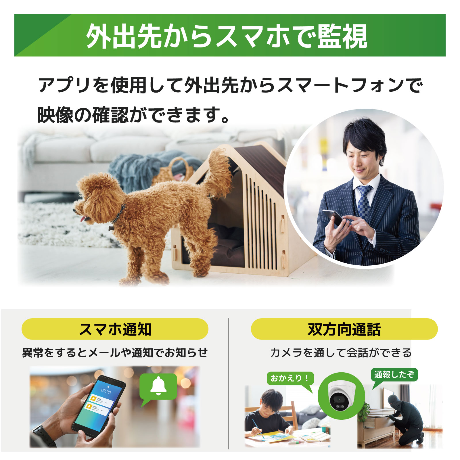 専用アプリと接続することで、外出先からスマホで映像を確認することができます