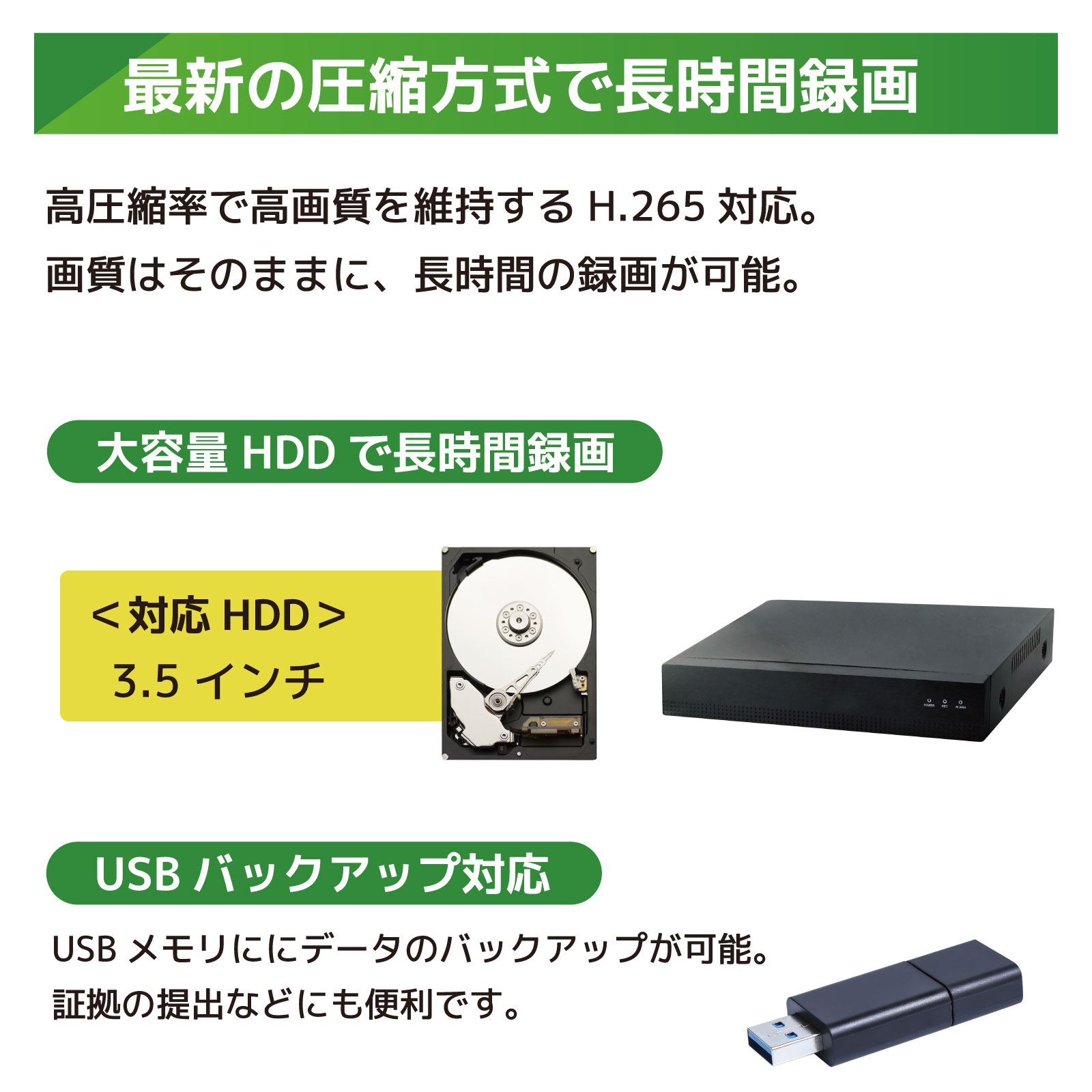 サイクル録画機能で常に最新データをHDDに保存。