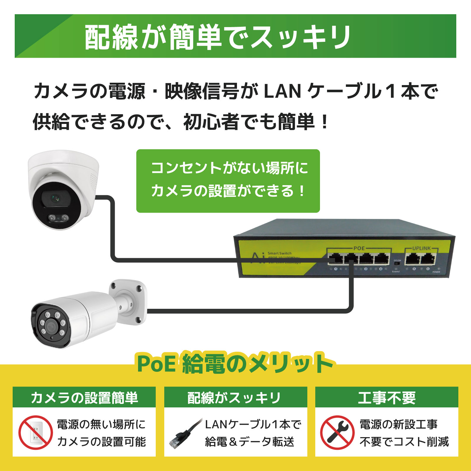 防犯カメラ用延長ケーブル 高規格型 BNCケーブル 映像電源一体型 CCTV (10m, 1本) [SEC-CBL-10H]