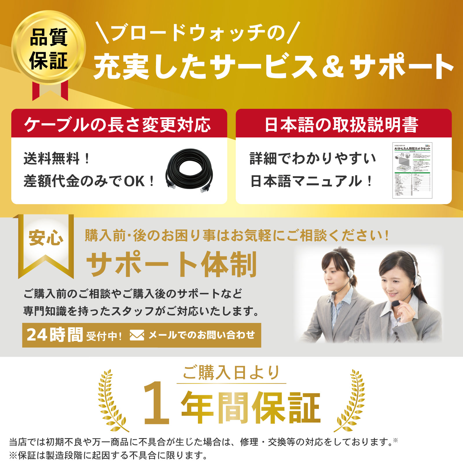 :10mケーブルでの提供ですが、ケーブル長を変更希望の方は差額変更対応しますので、ご注文前にお問い合わせください。カスタム防犯カメラセットは注文・ご入金確認後から発送までに3週間程度かかることがございますことをご了承ください。