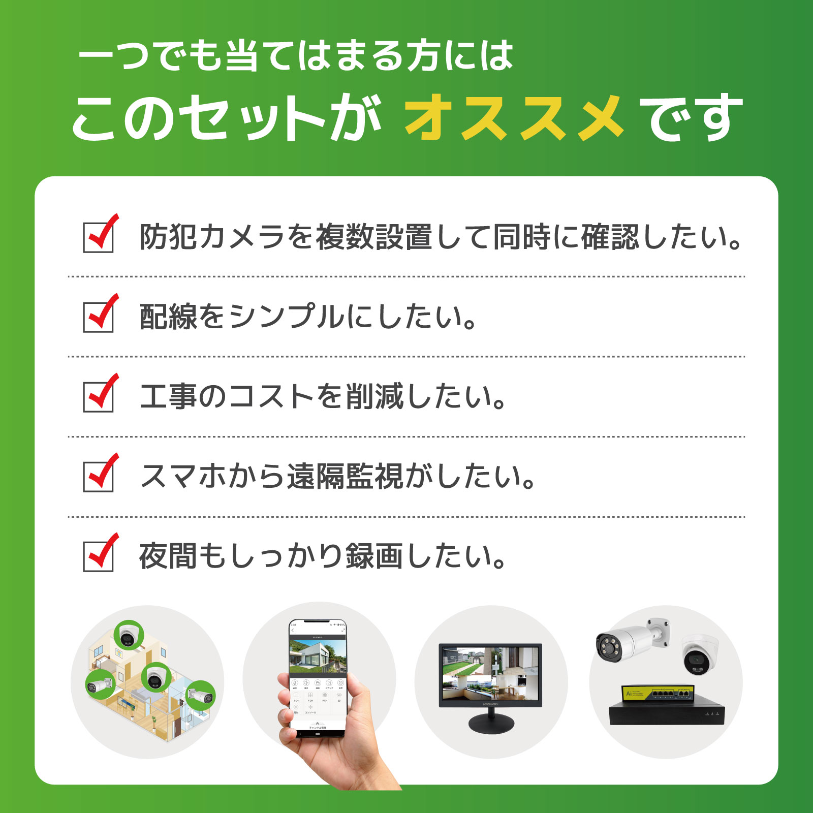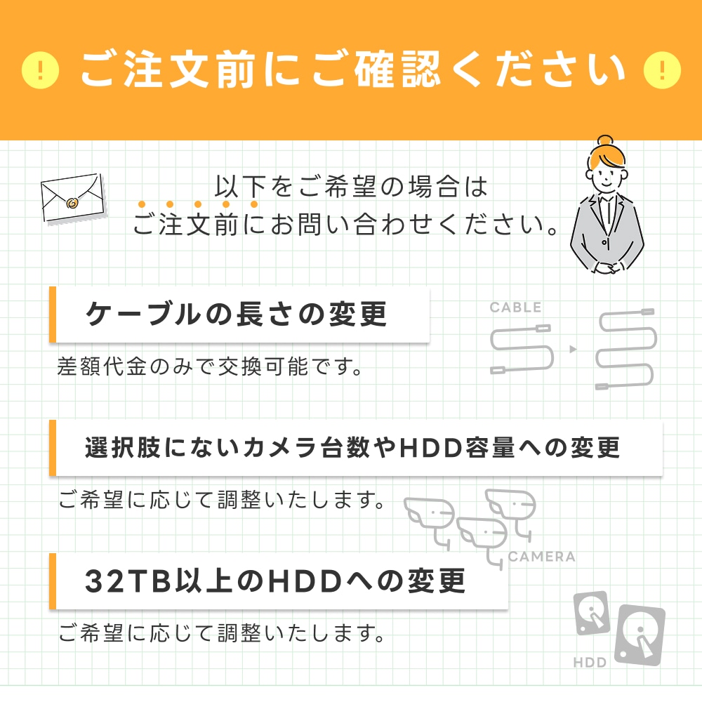 カメラの台数、HDDの容量、モニターの有無をカスタム(オーダーメイド)でご注文できます。