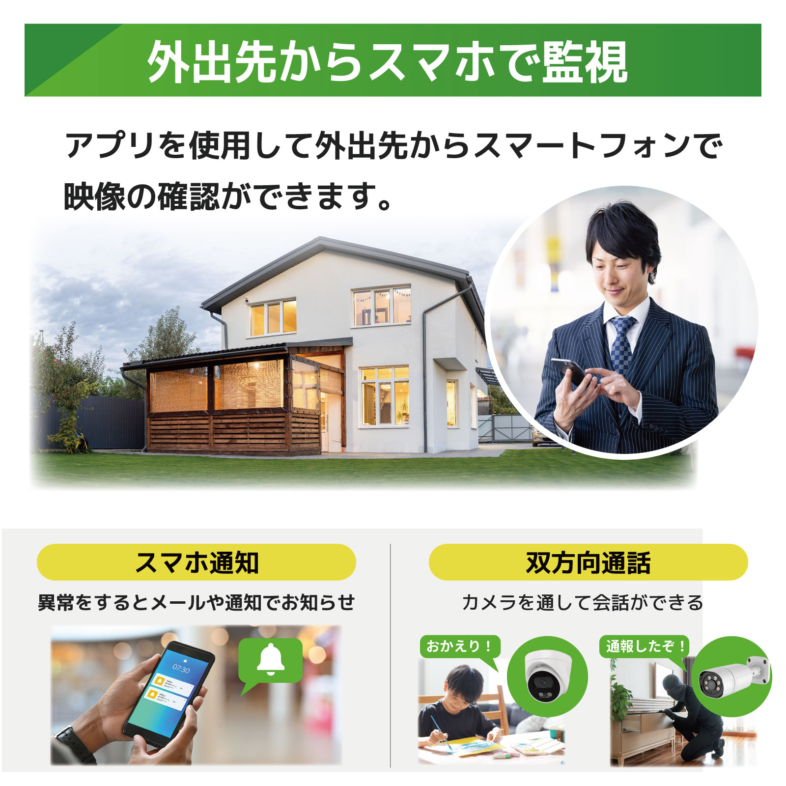 専用アプリと接続することで、外出先からスマホで映像を確認することができます
