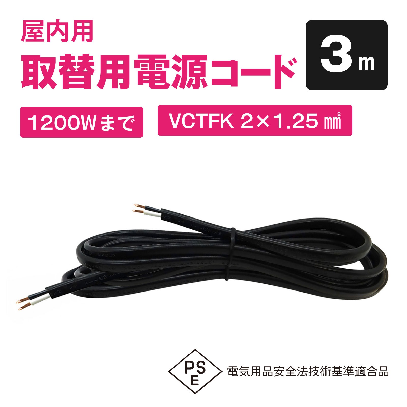 AC電源ケーブル 切りっぱなし(12A / ケーブル / VCTF / 3m) 電源コード PSE 屋内用 ブラック [PWR-CBL-12VCTF030]